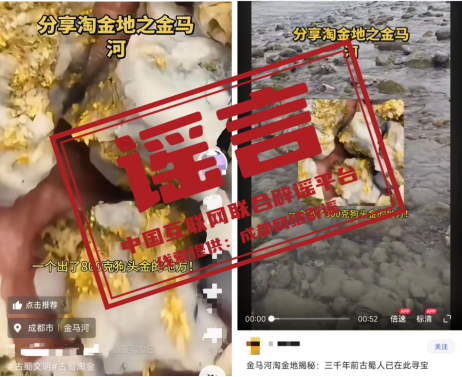 ?? 辟 謠  “金馬河現(xiàn)800克狗頭金”視頻系拼接剪輯