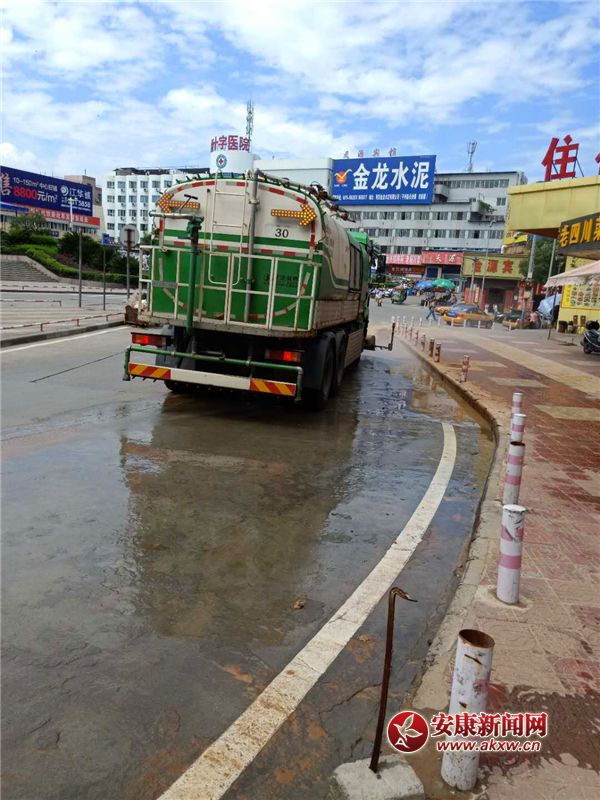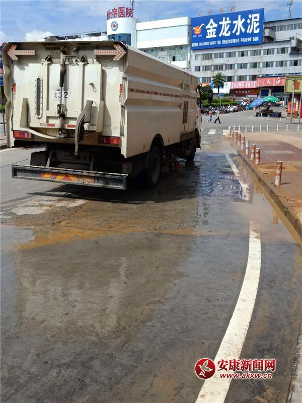 江北環(huán)衛(wèi)站清理火車站邊因大雨流下來的黃泥