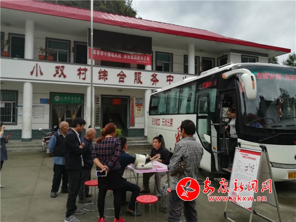 無償獻(xiàn)血車到小雙村,駐村干部、村干部和村民踴躍獻(xiàn)血。