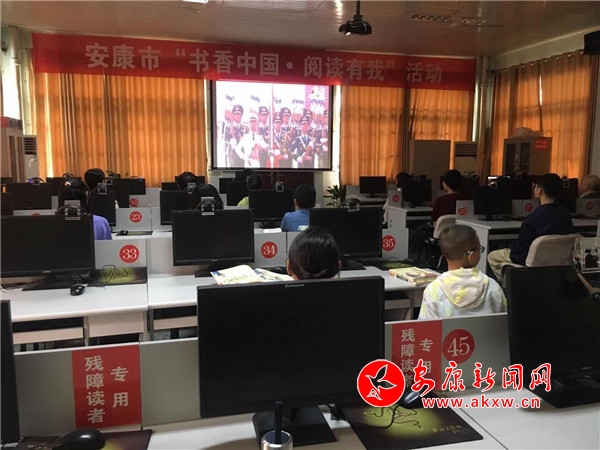 10月1日上午十點(diǎn),安康圖書館為前來電子閱覽室的30多名讀者轉(zhuǎn)播了慶祝中華人民共和國成立70周年大會央視直播視頻。(攝影 王庭德)