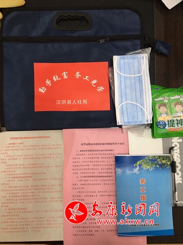 為了實現(xiàn)“從家門到企業(yè)”的“一站式”服務(wù),保障外出務(wù)工人員安全返崗復(fù)工,相關(guān)職能部門專門為每名務(wù)工人員準(zhǔn)備了裝有新冠病毒科普知識、務(wù)工指南、維權(quán)手冊、速食品和水等用品的紀(jì)念包,發(fā)放了口罩、濕巾等防護(hù)用品。