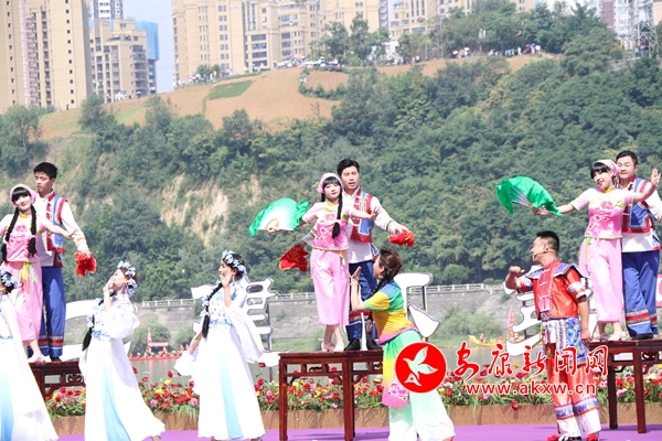 除了傳統(tǒng)儀式,情景劇《總書記來到咱身邊》、 民歌聯(lián)唱《秦巴風(fēng)韻》、 漢調(diào)二黃《不負(fù)青山追夢想》也相繼登臺,優(yōu)美的舞蹈配合婉轉(zhuǎn)唱腔,寓情于景,將傳統(tǒng)與現(xiàn)代、生活與藝術(shù)融合的恰到好處,特別是《總書記來到咱身邊》《不負(fù)青山追夢想》生動講述了習(xí)近平總書記平利之行的感人瞬間和殷切囑托,現(xiàn)場觀眾如身臨其境,心潮澎湃,深受鼓舞。期間還穿插進行了安康經(jīng)典龍舟民俗——龍舟橫渡和搶鴨子摸鯉魚。伴隨著震撼的鼓點聲,龍舟健兒劈波斬浪,競相角逐,江面上水花飛濺,江水中人如離弦,贏得現(xiàn)場群眾連連拍手吶喊。