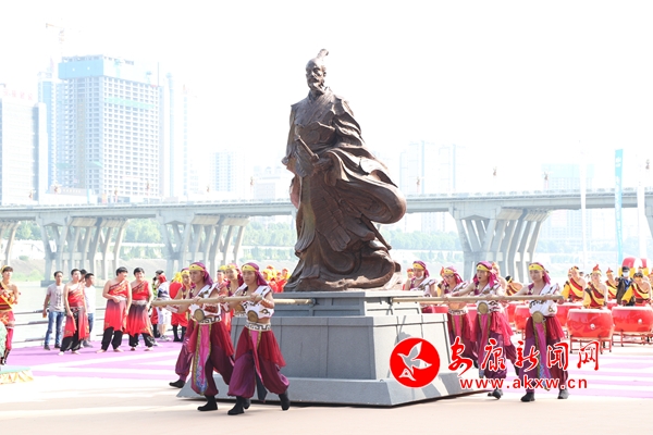 “緬懷先賢”隨著主祭官一聲令下,百名少年兒童方陣,著漢服,持竹簡,緩緩步入舞臺,在悠揚婉轉(zhuǎn)的古箏聲中,齊聲吟誦祭文。在全場目光的注視下,愛國詩人屈原塑像被九位壯漢護送至舞臺正中。在主祭官的引導(dǎo)下,眾人向屈原塑像鞠躬叩首,并將粽子投入江中,以示對先賢的敬畏與追思。
