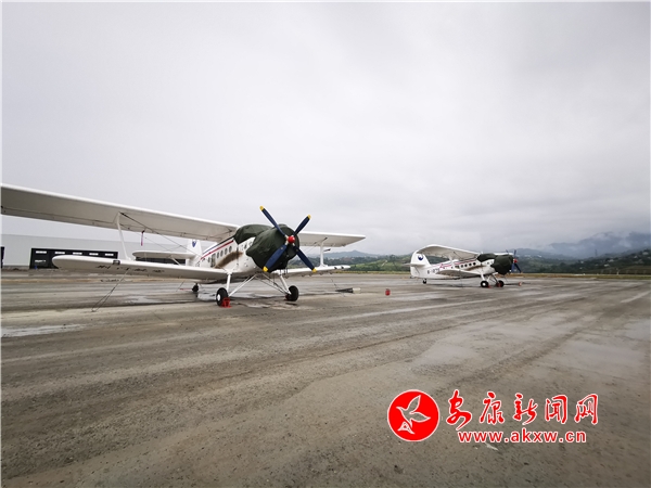 圖為在安康機(jī)場執(zhí)行林播任務(wù)的通航飛機(jī)