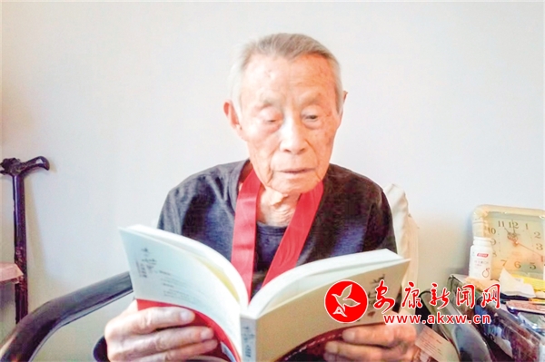 沿著漢陰縣老城墻過街走巷,爬上逼仄的老式居民樓,李煥龍在建黨節(jié)前夕來到了93歲的老黨員鄺民三的家中。作為安康市書香少兒讀書會負(fù)責(zé)人,李煥龍此次的來意,是為了聘請鄺民三擔(dān)任安康市書香少兒讀書會“愛心大使”。