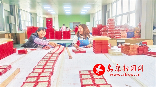 四畝地鎮(zhèn)四畝地社區(qū)居民在家門口的社區(qū)工廠務工 譚海波 攝