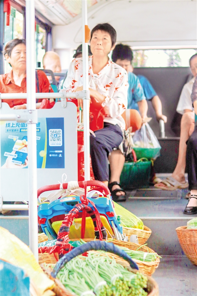 “滴——公益卡。”他刷完卡后,迅速掃視車廂,先把菜筐放在后門邊的空檔處,確保下車快,然后眼疾手快地“占領”了靠近后門的座位。“今兒人少,運氣好!”搶到這個座位,意味著他能早早抵達市場,在人流涌來前,占一個靠前又光線好的攤位。這可是兩筐菜賣個好價錢的開端。