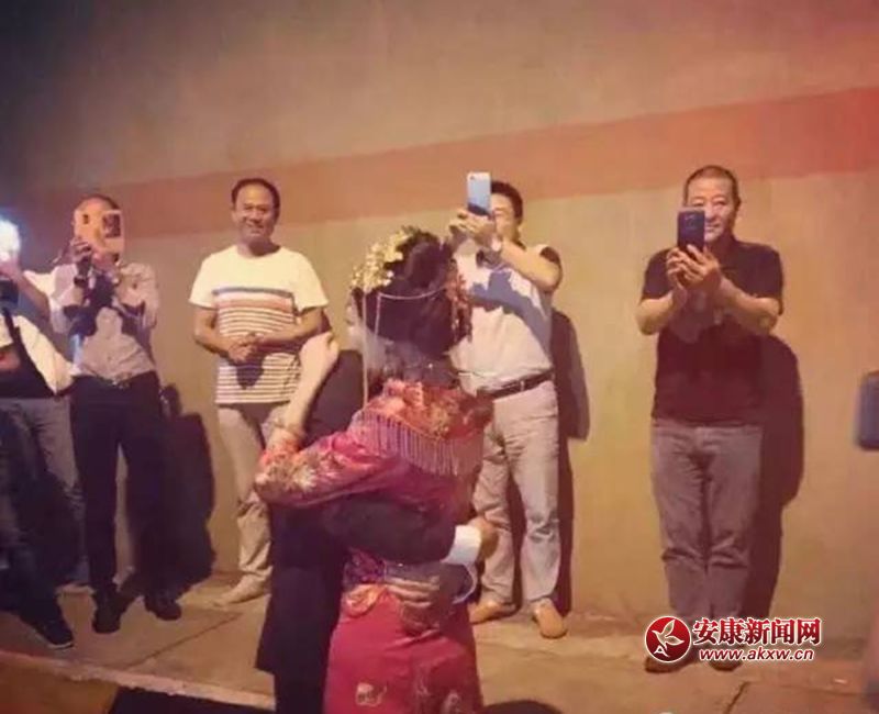 據(jù)婚慶公司工作人員介紹,自己曾策劃過許多次婚禮,但在高速路隧道內(nèi)舉辦婚禮還是頭一遭。新郎是安康市漢濱區(qū)人,新娘子是紫陽縣人。當日早上五點多,新郎便乘坐婚車去接新娘,不料返程時因前方發(fā)生車禍,被堵在了隧道內(nèi)。當時覺得距離12點辦儀式的時間還早,大家心態(tài)都比較輕松,新郎還和幾個朋友蹲在隧道內(nèi)玩了一會撲克。不料一個多小時后,隧道仍未疏通,按照當?shù)亓曀祝氯吮仨氃谥形?2點前辦儀式,于是他們商量并征得新人同意后,便舉行了一個簡單婚禮儀式,“當時為了保證安全,以及不影響其他車輛,儀式縮短為10多分鐘了。”