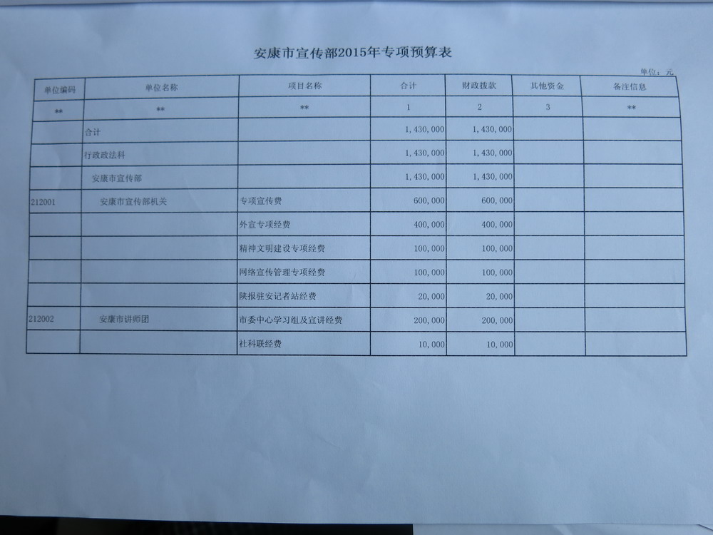 為了做好預(yù)算信息公開工作,根據(jù)相關(guān)文件要求,現(xiàn)將我部2015年預(yù)算信息公開如下: