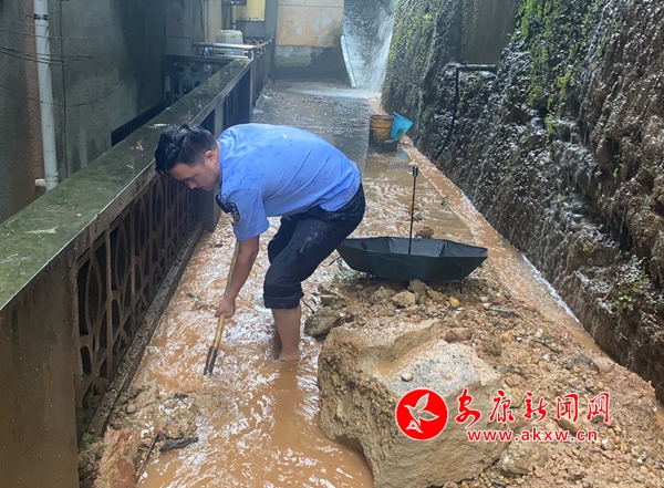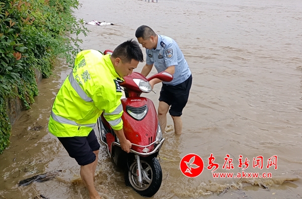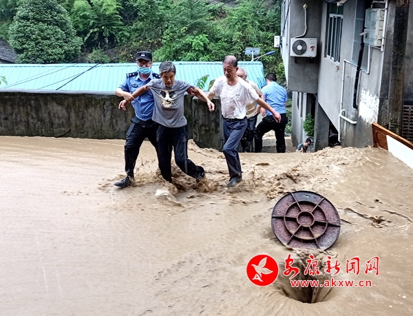 8月22日,紫陽縣漢王鎮(zhèn)普降大暴雨,漢王鎮(zhèn)上街道因雨量大發(fā)生洪水內(nèi)澇,直接威脅街道居民住戶生命財產(chǎn)安全。轄區(qū)民警立即組織群眾用木板擋住洪水,防止洪水進入居民樓浸泡發(fā)生房屋垮塌,同時冒著危險將街道下水道井蓋掀開,分流泄洪。