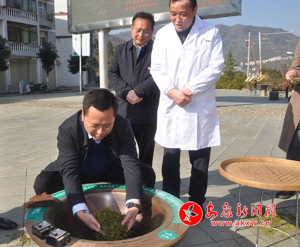 活動(dòng)中,殺青、揉捻、定型,鮮嫩的茶葉在黨員干部手掌和鍋中上下翻騰,左右揉搓。經(jīng)過(guò)近兩個(gè)小時(shí)的耐心制作,成品紫陽(yáng)綠茶新鮮出鍋,空氣中散發(fā)出濃濃茶香。
