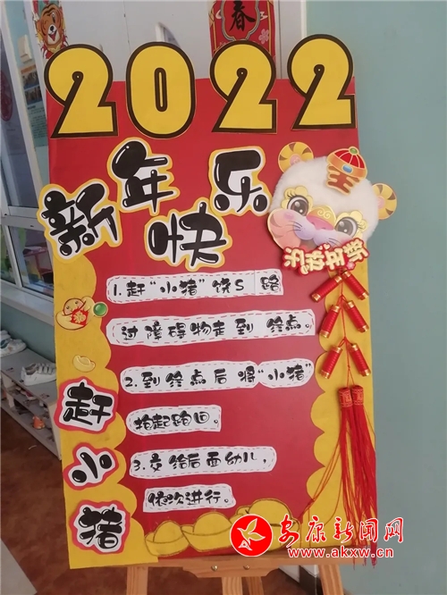 游戲“享”元旦。根據(jù)孩子的興趣愛好,設(shè)計不同類的游戲項目,以闖關(guān)的形式玩游戲,孩子們在游戲中既鍛煉了身體,又收獲了快樂。