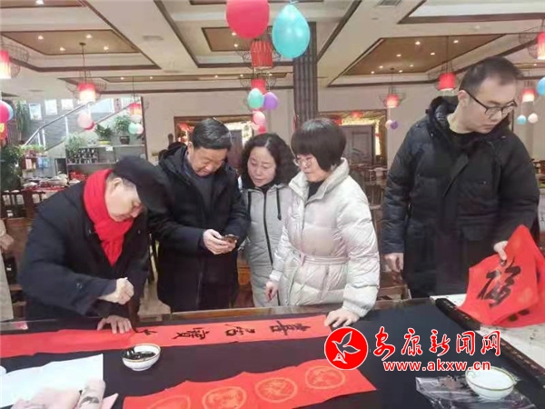 本網(wǎng)訊(通訊員 田虹)瑞雪紛飛,臘月尤寒。自1月20日至26日,安康市延安精神研究會組織部分會員采取集寫分送或分寫集送的方式,先后為安康市亦合安企業(yè)管理有限公司、平利縣新立人力資源管理公司、嵐皋縣瀛湖漢源漁業(yè)公司等會員單位及職工,神河鎮(zhèn)敬老院及街道社區(qū)群眾送春聯(lián)送溫暖。一幅幅鮮紅的楹聯(lián)為即將來臨的虎年春節(jié)增添了濃濃暖意。