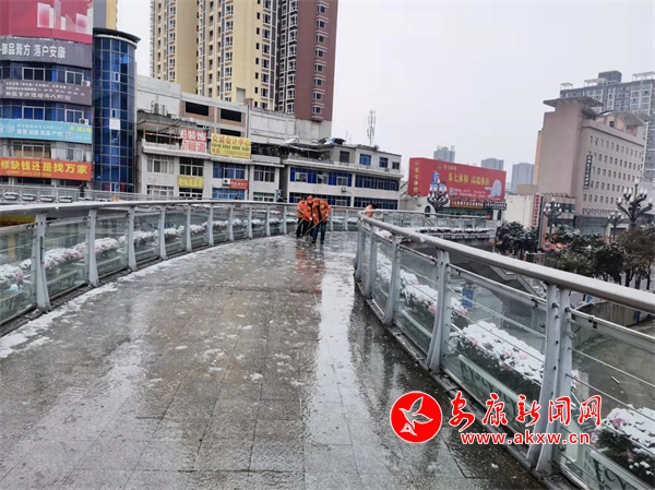 據(jù)了解,7日清晨,安康市市政園林處共投入人力40余人,融雪劑3噸,車輛10臺(tái),對(duì)城區(qū)雷神殿、馬坎天橋、漢江一橋、三橋、南環(huán)干道陳家溝大橋及部分公園集中開(kāi)展除雪融冰工作。