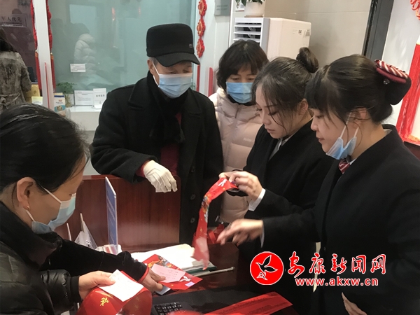 中年男子接過獎(jiǎng)品,高興地說:“來這兒存錢辦事,既猜燈謎,又可中獎(jiǎng),預(yù)示虎年大吉好兆頭,真是打心底里開心,這活動(dòng)舉辦的太有意義了。”
