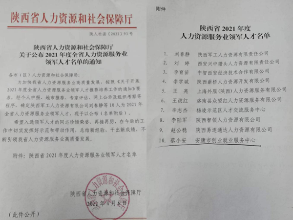 原標題:蔡小安同志榮獲”2021年度全省人力資源服務業(yè)領(lǐng)軍人才”稱號