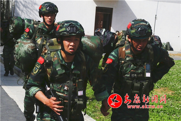 “報(bào)告,廢棄平房北側(cè)發(fā)現(xiàn)目標(biāo)!”狙擊組占領(lǐng)有利位置后迅速鎖定“犯罪分子”方位,指揮員隨即調(diào)整戰(zhàn)法,派出突擊組兵分兩路合圍,準(zhǔn)備強(qiáng)行突入解救“人質(zhì)”。訓(xùn)練場上,一場“紅藍(lán)”實(shí)兵對(duì)抗演練正如火如荼地進(jìn)行。據(jù)了解,此次駐訓(xùn)以任務(wù)為牽引,將戰(zhàn)術(shù)訓(xùn)練貫穿全程,充分融合極限訓(xùn)練與對(duì)抗訓(xùn)練的特點(diǎn)規(guī)律,開展極限體能、捕殲戰(zhàn)斗、綜合戰(zhàn)斗演練和多種槍械實(shí)彈射擊等訓(xùn)練課目,通過一次次挑戰(zhàn)體能極限的嚴(yán)酷訓(xùn)練,磨煉頑強(qiáng)的戰(zhàn)斗精神,全方位錘煉打贏本領(lǐng)。