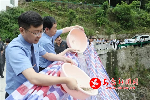 6月5日,在剛剛過(guò)去的第51個(gè)世界環(huán)境日,安康鐵檢院、安鐵法院、安康市農(nóng)業(yè)農(nóng)村局等單位在紫陽(yáng)聯(lián)合開(kāi)展增殖放流活動(dòng),用三名被告繳納的野生動(dòng)物資源損失費(fèi)購(gòu)買(mǎi)錢(qián)魚(yú)魚(yú)苗10000余尾,投放在案發(fā)地水域,及時(shí)修復(fù)因犯罪行為而受損的任河國(guó)家級(jí)保護(hù)區(qū)的生態(tài)環(huán)境。