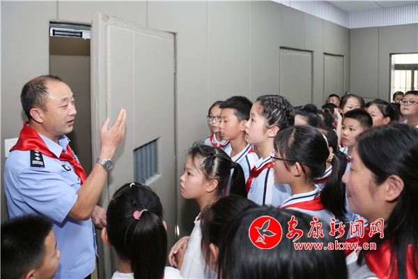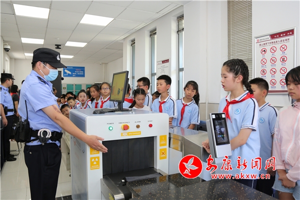 同學(xué)們?cè)诜ň瘞ьI(lǐng)下,依次經(jīng)過(guò)安檢門(mén)。更讓同學(xué)們好奇的是法警小哥的警用裝備,同學(xué)們認(rèn)真聆聽(tīng)法警對(duì)每樣警用裝備的講解,還不時(shí)發(fā)問(wèn),興趣盎然。隨后,同學(xué)們依次參觀了法庭、羈押室和全國(guó)維護(hù)婦女兒童權(quán)益先進(jìn)集體工作室,對(duì)法庭開(kāi)庭審理案件、羈押犯罪嫌疑人和保護(hù)婦女兒童權(quán)益等知識(shí)有了更深入的認(rèn)識(shí)和了解。