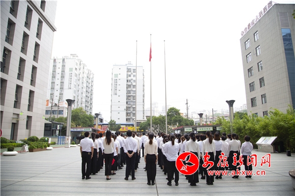 8時(shí)30分,升國(guó)旗儀式正式開始。四位升旗手邁著堅(jiān)定的步伐護(hù)送國(guó)旗走到旗桿下。伴隨著雄壯的國(guó)歌,鮮艷的五星紅旗冉冉升起,全體人員莊嚴(yán)站立,面向五星紅旗行注目禮,高唱國(guó)歌,抒發(fā)愛國(guó)情懷。z83安康新聞網(wǎng)