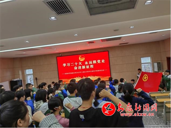 本網(wǎng)訊(通訊員 劉玉。10月20日,安康中學(xué)高新分校團(tuán)委舉行了“學(xué)習(xí)二十大 永遠(yuǎn)跟黨走 奮進(jìn)新征程”2022年新團(tuán)員入團(tuán)儀式暨學(xué)生規(guī)范守則教育活動,旨在以入團(tuán)儀式的形式開展具象化、分眾化規(guī)范守則教育活動,引導(dǎo)廣大團(tuán)員青年弘揚(yáng)愛國主義精神,傳承紅色基因,增強(qiáng)責(zé)任感和使命感。學(xué)校黨支部副書記、團(tuán)委書記、各班團(tuán)支書和團(tuán)員代表參加。