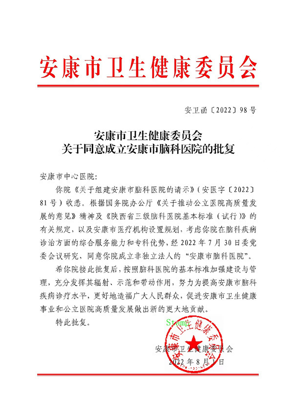 8月10日,市衛(wèi)健委正式批準(zhǔn)成立“安康市腦科醫(yī)院”,開啟了安康市腦病科領(lǐng)域發(fā)展新篇章。