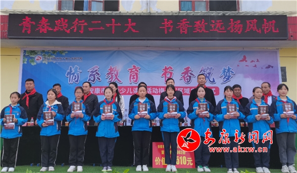 當(dāng)天中午的啟動儀式上,梅子鋪區(qū)域的梅子鋪九年制學(xué)校和袁莊、余嶺、逸夫三所村級小學(xué)一道實(shí)施“全校同讀一本書”活動。校方介紹:本學(xué)期將以每輪淘汰百分之五十的讀書作文競賽方式,開啟三輪閱讀比賽,所用圖書均由安康市慈善協(xié)會南山分會認(rèn)捐。