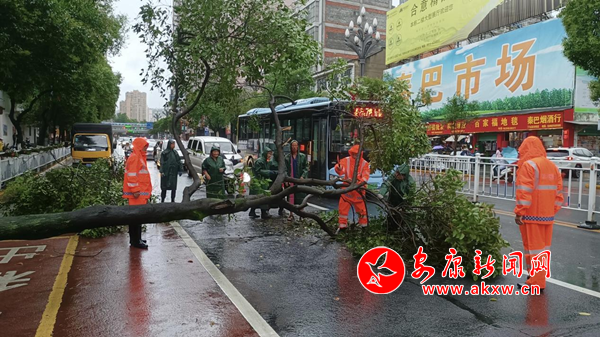 在濱江大道、大橋路,搶險隊員們對多處倒伏、斷枝樹木,火速組織養(yǎng)護人員及車輛,有序投入搶險工作。他們手拿電鋸、砍刀等工具,對受損樹木進行修剪,對倒伏樹枝進行清除,對傾斜樹木進行扶正加固并及時清理殘枝敗葉,及時排除安全隱患,保障過往車輛和行人安全。