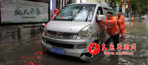 在安康城區(qū)棗園路、南環(huán)路(安康學院圖書館前、市委門前)、育才路(陽光學校前)、大橋路(喜盈門超市前)、興安路(江華城前)、漢江一橋北轉盤、安旬路口、江北大道(九華飯店門前)等9個易澇風險點位,市、區(qū)聯(lián)動,領導靠前指揮,搶險隊員們正奮力接篦排澇,他們不顧浸水的雨鞋、濕透的衣衫,不懼臟臭,揭開雨水篦、堅守井邊,持續(xù)清除井蓋上的阻水雜物,加速排水。