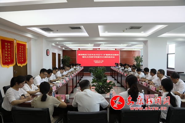本網(wǎng)訊(記者 陸青波 見習(xí)記者 張璇 通訊員 郭彧)在習(xí)近平總書記在中央和國(guó)家機(jī)關(guān)黨的建設(shè)工作會(huì)議上發(fā)表重要講話四周年之際,7月7日下午,市直機(jī)關(guān)工委召開貫徹落實(shí)習(xí)近平總書記“7·9”重要講話精神暨機(jī)關(guān)黨委專職副書記調(diào)研座談會(huì)。市直各機(jī)關(guān)黨委專職副書記和工委干部30余人參加會(huì)議。
