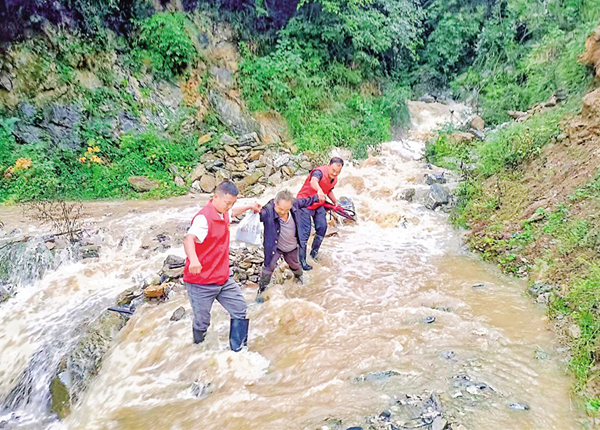 ⇑ 9月19日,石泉縣曾溪鎮(zhèn)境內(nèi)普降大雨,駐村工作隊連同大溝村干部下沉一線排險搶險。文倩 丁浩哲 攝t79安康新聞網(wǎng)