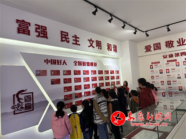 志愿者利用非遺互動(dòng)墻組織孩子們學(xué)習(xí)《紅軍老祖》的故事,通過(guò)文字、圖片以及志愿者的講解讓孩子們直觀了解英雄事跡,了解到“紅軍老祖”這種尊稱背后,寄托著人民群眾對(duì)紅軍真誠(chéng)、淳樸、久遠(yuǎn)的熱愛和懷念。隨后,志愿者帶孩子們參觀“安康好人館”,“安康好人館”分成前言板塊、全國(guó)道德模范及中國(guó)好人板塊、陜西道德模范及陜西好人板塊、安康道德模范板塊,培養(yǎng)和樹立孩子們“誠(chéng)實(shí)守信”“助人為樂(lè)”“孝老愛親”“敬業(yè)奉獻(xiàn)”“見義勇為”的文明意識(shí)。最后,志愿者將孩子們帶到書畫展廳,通過(guò)參觀、講解的方式,讓孩子們感受傳統(tǒng)文化的藝術(shù)魅力,希望孩子們學(xué)習(xí)藝術(shù)作品的構(gòu)圖、色彩搭配、線條等藝術(shù)手法并運(yùn)用到自己的學(xué)習(xí)當(dāng)中。