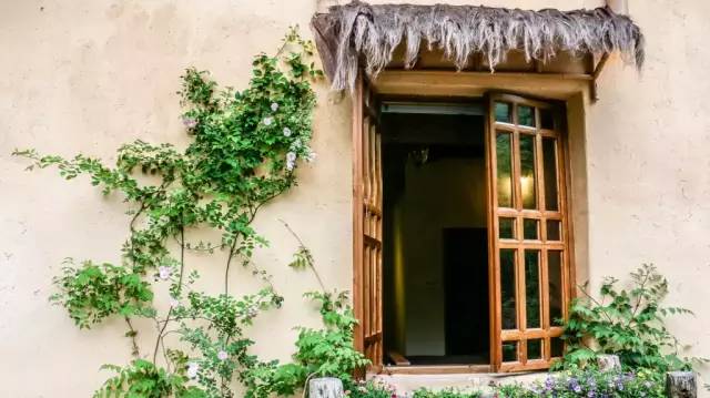 這幢二層樓的民房保留了曾經(jīng)最原始的夯土墻,斑駁泥墻上爬著薔薇,欲沖上二樓的茅草窗檐。院內(nèi)植被、山花落滿視線,加上院落里那一池清泉,將“鄉(xiāng)野”風發(fā)揮到了極致。走進屋內(nèi),文藝氣息與鄉(xiāng)村風格結合,現(xiàn)代與古典碰撞的裝飾,陳谷把它們完美地結合在了一起,樓梯處一個古鏡架,再現(xiàn)一種時光錯亂的感覺。陳谷說,這些我們看到的古典原素的物品都是他從各地收羅來的,別人眼中的廢棄物,放在屬于它的地方,才有價值。