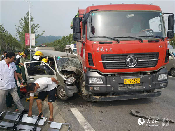 一輛面包車和一輛貨車相撞后,因車型差異較大,面包車車頭直接“鉆”入了貨車前輪處,車輛瞬間變形,面包車駕駛員被困車內(nèi),湖北省十堰消防員緊急營救被困駕駛員并將其送醫(yī)救治,目前被困駕駛員已脫離生命危險。