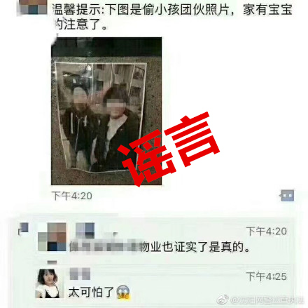 【傳聞】一張兩名女子的照片在全國多地?zé)醾,并配有文字稱“下圖是偷小孩團(tuán)伙照片,家要有寶寶的注意了”“大家注意此二人,這兩個(gè)人偷孩子的!物業(yè)已經(jīng)貼了告示。請相互轉(zhuǎn)告...”
