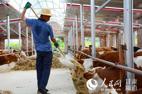 45歲的毛哈比是臨夏回族自治州廣河縣伊澤苑牛羊養(yǎng)殖農(nóng)民專業(yè)合作社的飼養(yǎng)員,不用風(fēng)吹雨淋,包吃包住,每月還能拿到將近3000元錢的工資,再也不用四處打工。他說(shuō)道:“飼養(yǎng)員這個(gè)工作很保險(xiǎn),每月一到時(shí)間就能拿到錢,生活更有保障!