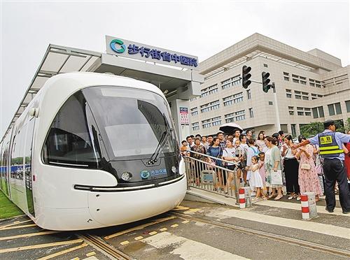 湖北省武漢市省中醫(yī)院門口,乘客在等待有軌電車。近年來(lái),當(dāng)?shù)匕训罔F、有軌電車、公交車和出租車站點(diǎn)安排在離醫(yī)院近的地方,讓百姓方便就醫(yī)。 鄭傳海攝
