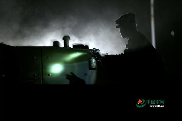 1:00,一名戰(zhàn)士正在為戰(zhàn)車涂裝。為了保障備戰(zhàn)閱兵活動(dòng),該方隊(duì)官兵吃住在車場,連續(xù)奮戰(zhàn)3天3夜,完成了原計(jì)劃8天的涂裝工作量。