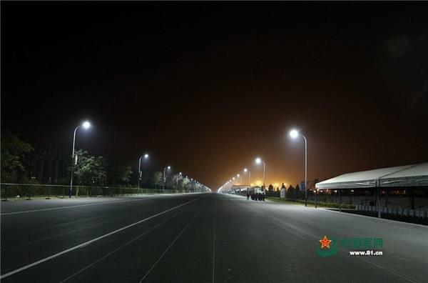 24:00,一群結(jié)束夜訓(xùn)任務(wù)的官兵走在空曠的訓(xùn)練大道上。