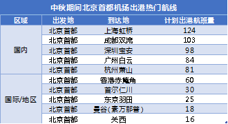 值得注意的是,十佳賞月航線中有5條往返北京首都機(jī)常