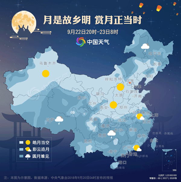 央視網消息:據中國天氣網消息,月圓人團圓的中秋佳節(jié)將至,這個假期(22-24日),我國總體上是北晴南雨的天氣格局,具體哪里能賞到皓月當空的美景?哪里會有雨水擾亂行程?哪里要注意添衣保暖呢?中國天氣網推出獨家賞月預測,還有假期出行、穿衣攻略,請查收。