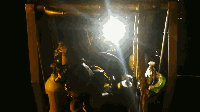 20時30分,第十批潛水員下水,起吊前最后檢查確認(rèn)水下公交車的姿態(tài)。