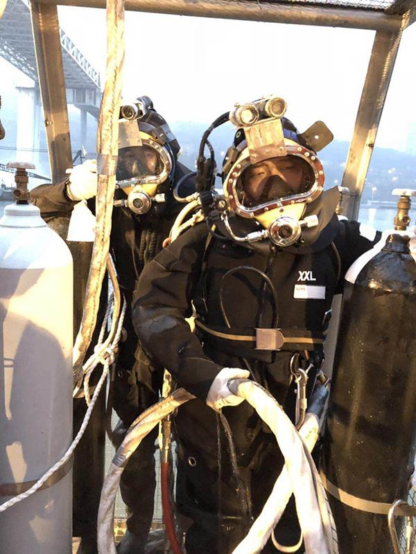超過60米水深,就需要使用專業(yè)氦氧潛水技術(shù)。在潛水前需要根據(jù)實(shí)際水深配置潛水員呼吸用的氦氣和氧氣,再由專業(yè)潛水員開展水下工作。在氦氧混合氣體潛水作業(yè)條件下,為保障潛水員的安全,每次作業(yè)時間最長只有35分鐘左右。作業(yè)完畢后,潛水員需要在上浮過程中逐步減壓兩個半小時,出水后還要再進(jìn)入減壓艙減壓3小時。