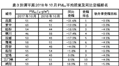 《通報》對京津冀及周邊地區(qū)“2+26”城市、長三角地區(qū)41個城市、汾渭平原11個城市2018年10月細顆粒物(PM2.5)平均濃度和同比變化幅度分別進行了排名。