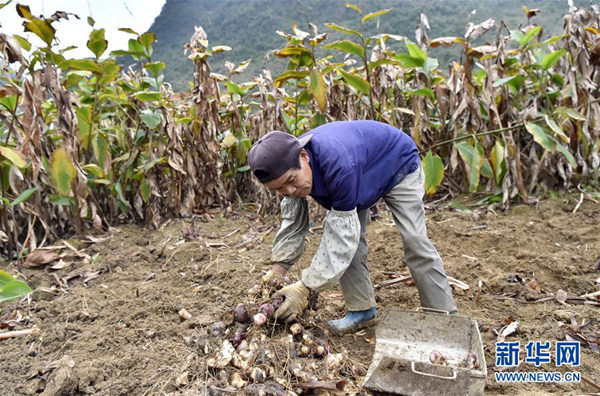 12月26日,河池市金城江區(qū)九圩鎮(zhèn)板岜村中樂屯村民裝運新收獲的旱藕。 廣西河池市金城江區(qū)與農(nóng)業(yè)科研機構(gòu)合作,積極引導群眾因地制宜發(fā)展特色種植,采勸公司+農(nóng)戶”的模式,開辟出一條特色農(nóng)業(yè)致富路徑,助力鄉(xiāng)村振興農(nóng)民增收。 新華社記者 周華 攝