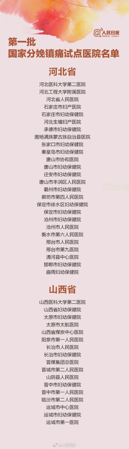 轉(zhuǎn)存!首批國家分娩鎮(zhèn)痛試點(diǎn)醫(yī)院名單來了!