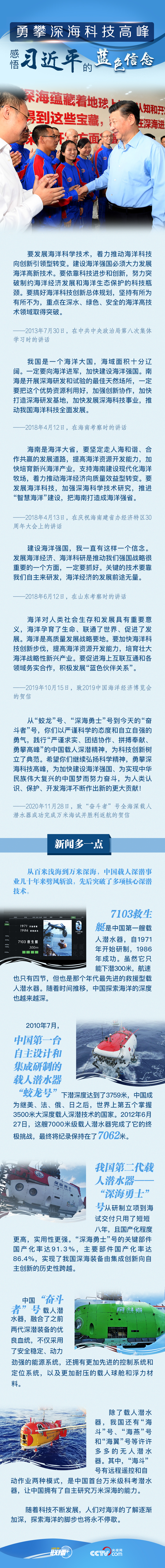 習近平總書記在賀信中指出,“奮斗者”號研制及海試的成功,標志著我國具有了進入世界海洋最深處開展科學探索和研究的能力,體現(xiàn)了我國在海洋高技術領域的綜合實力?倳浵M兄铝τ谏詈Qb備研發(fā)、深淵科學研究的科研工作者繼續(xù)弘揚科學精神,勇攀深?萍几叻,為加快建設海洋強國、為實現(xiàn)中華民族偉大復興的中國夢而努力奮斗,為人類認識、保護、開發(fā)海洋不斷作出新的更大貢獻。