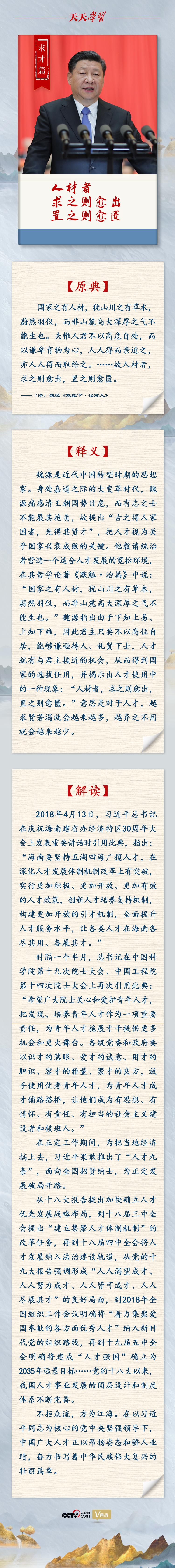 編者按:中央人才工作會議9月27日至28日在北京召開,習(xí)近平總書記出席會議并發(fā)表重要講話。黨的十八大以來,總書記站在黨和國家事業(yè)發(fā)展全局的戰(zhàn)略高度,對我國人才事業(yè)發(fā)展作出一系列重要指示。在講話和文章中,他大量引用有關(guān)中國古代人才思想的典故,就如何選才、敬才、求才、育才、用才等話題,提出了一系列新思想、新觀點、新論斷、新要求,為新時代做好人才工作提供了根本遵循和行動指南!短焯鞂W(xué)習(xí)》帶您一起學(xué)習(xí)回顧。 rPv安康新聞網(wǎng)
