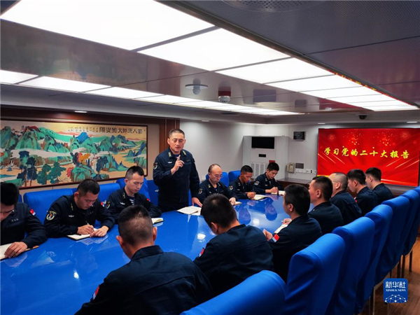 中共中央總書記、國家主席、中央軍委主席習(xí)近平24日下午出席軍隊(duì)領(lǐng)導(dǎo)干部會(huì)議時(shí)發(fā)表的重要講話,在解放軍和武警部隊(duì)引起強(qiáng)烈反響。這是東部戰(zhàn)區(qū)海軍護(hù)衛(wèi)艦支隊(duì)迅速組織官兵學(xué)習(xí)習(xí)主席重要講話(10月25日攝)。新華社發(fā)(劉祎瑋 攝)