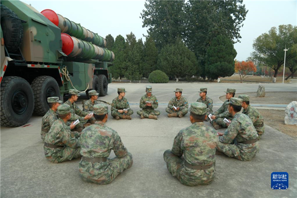 中共中央總書記、國家主席、中央軍委主席習(xí)近平24日下午出席軍隊(duì)領(lǐng)導(dǎo)干部會(huì)議時(shí)發(fā)表的重要講話,在解放軍和武警部隊(duì)引起強(qiáng)烈反響。這是中部戰(zhàn)區(qū)空軍“模范地空導(dǎo)彈營(yíng)”開展“鳴鏑講堂”交流活動(dòng),積極組織官兵學(xué)習(xí)習(xí)主席重要講話(10月25日攝)。新華社發(fā)(趙勝之 攝)